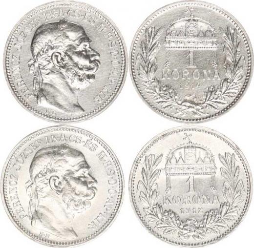 1 Koruna 1912 KB, 1914 KB 2 ks