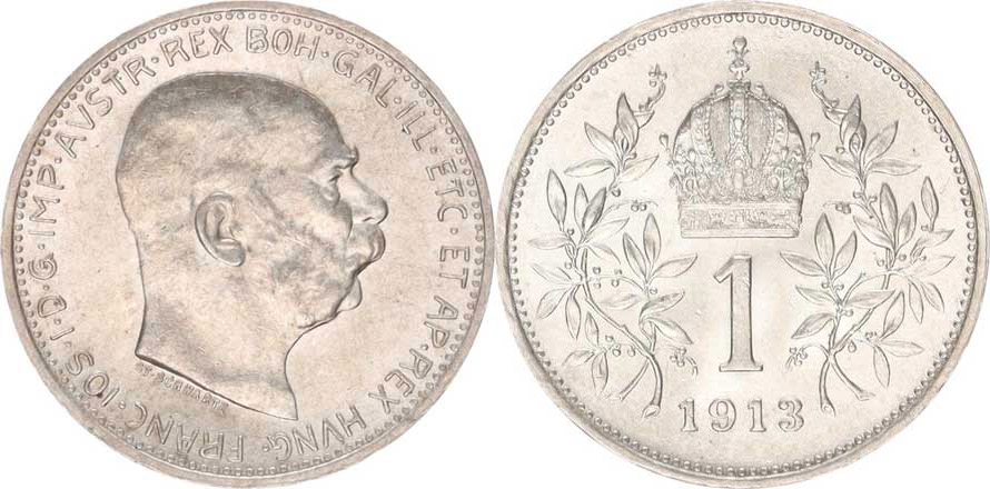 František Josef I.(1848-1918), 1 Koruna 1913 b.zn.
