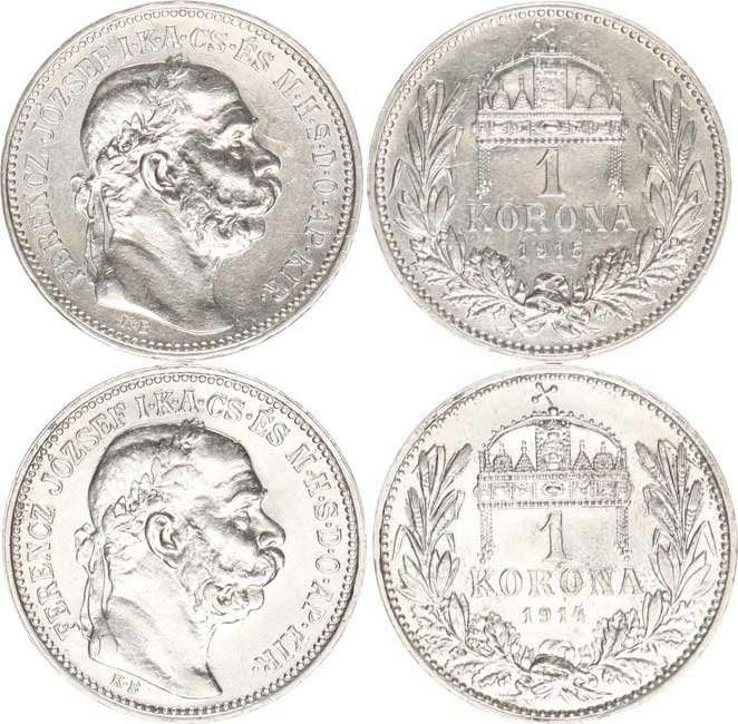 1 Koruna 1914 KB, 1915 KB 2 ks