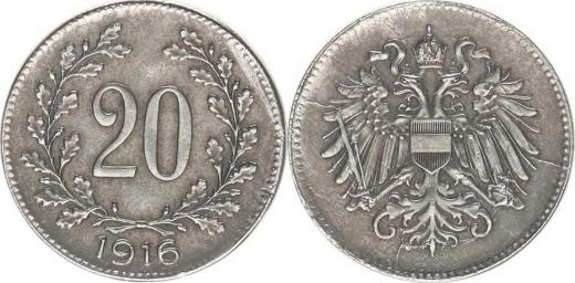 František Josef I.(1848-1918), 20 hal. 1916 b.zn. - Fe