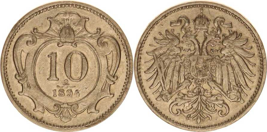 František Josef I.(1848-1918), 10 hal. 1894 b.zn.