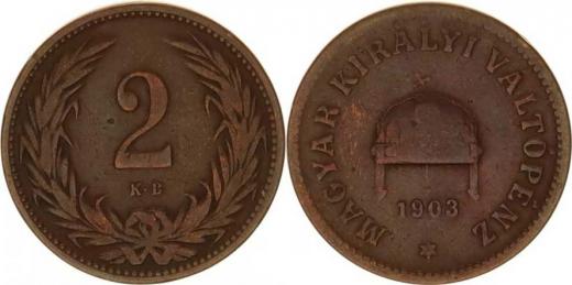 František Josef I.(1848-1918), 2 Fillér 1903 KB "R", tém.