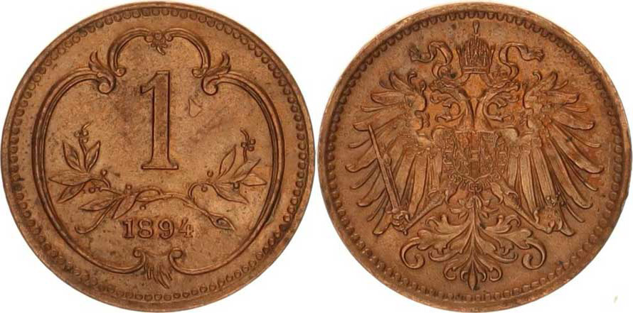 František Josef I.(1848-1918), 1 hal. 1894 b.zn. "sbírkový stav"