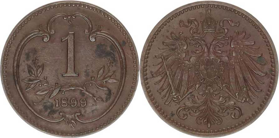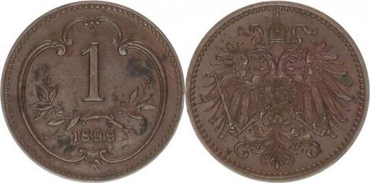 František Josef I.(1848-1918), 1 hal. 1899 b.zn. "R", dr. oxyd. skv.
