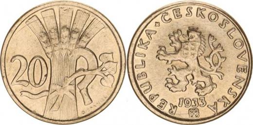 Údobí let 1918-1938, 20 hal. 1933 "FALZUM" 4,07 g