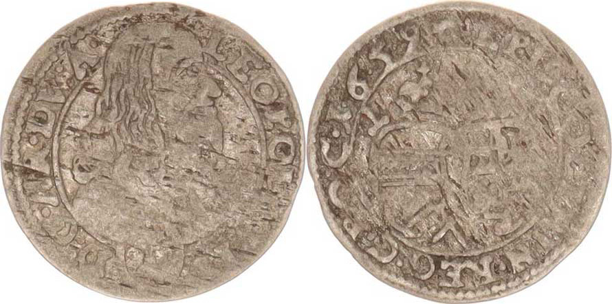1 kr. 1659, Huser S-V 115 opis: LEOPOL G.... / D: G.AR. DV: A., nedor., tém.