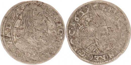 Olomouc, Leopold Vilém (1637-1662), 1 kr. 1659, Huser S-V 115 opis: LEOPOL G.... / D: G.AR. DV: