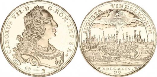Tolar MDCCXLIV (1744) IT, pohled na město / Poprsí cís. Karla VII . jako KM 152 "REPLIKA 1977" Ag 835 27,704 g