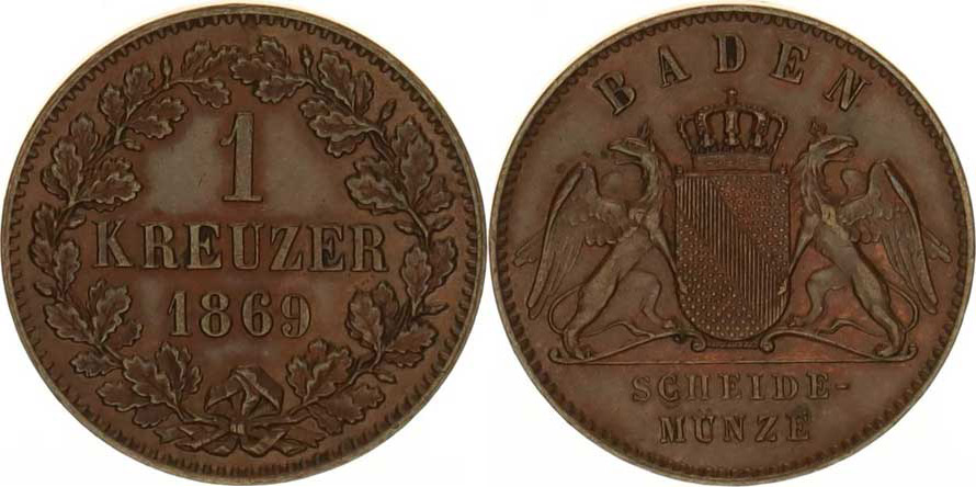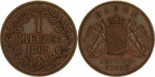 Baden, Friedrich I. (1852-56-1907), 1 Kreuzer 1869 KM 242