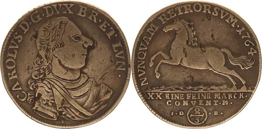 Brunswick - Wolfenbüttel, Carolus I. (1735-1780), 2/3 tolaru 1764 E/ID B KM 973,1