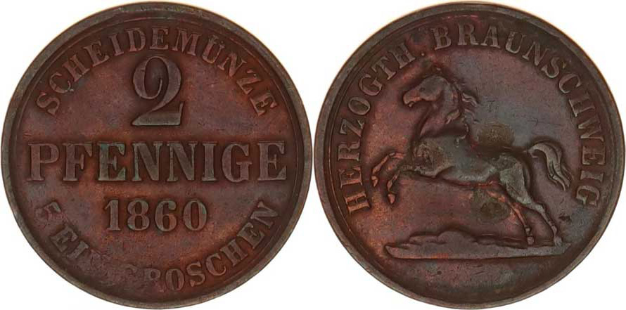 Brunswick - Wolfenbüttel, Wilhelm (1831-1884), 2 Pfennige 1860 KM 1155