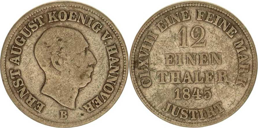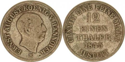 Hannover, Ernst August (1837-1851), 1/12 tolaru 1845 B KM 194.2, tém.