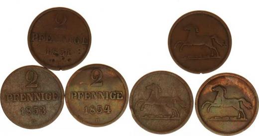 Hannover, Georg V. (1851-1866), 2 Pfennige 1851 B, 1853 B, 1854 B 3 ks