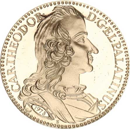 Heidelberg, Carl Theodor el Palatinus, Gulden 1746, portrét / Boží oko nad městem "Replika 1978"