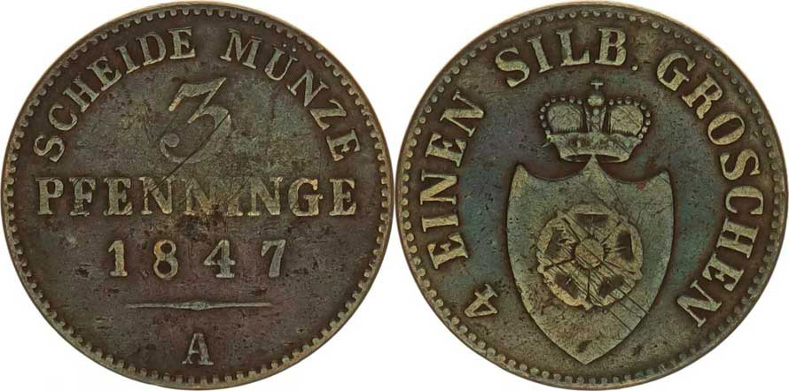 3 Pfenninge 1847 A KM 253