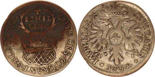 Lübeck, 4 Schilling 1728 JJJ KM 143, Cr.9,1