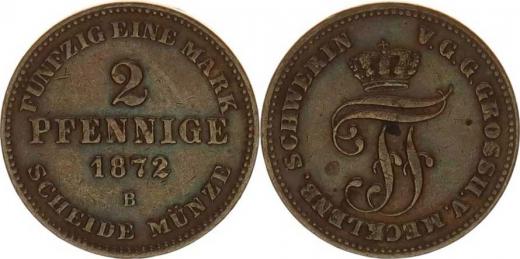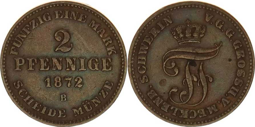 Mecklenburg-Schwerin, Friedrich Franz II. (1842-1883), 2 Pfennige 1872 B KM 316
