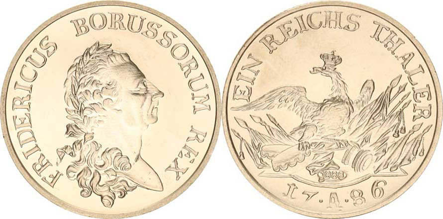 Prusko, Friedrich II.(1740-1786), Tolar říšský 1786 A "REPLIKA 1986" Ag 999/1000 30 g