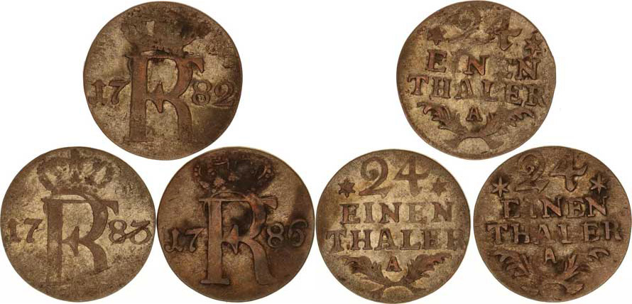 Prusko, Friedrich II.(1740-1786), 1/24 tolaru 1782 A, 1783 A, 1786 A 3 ks