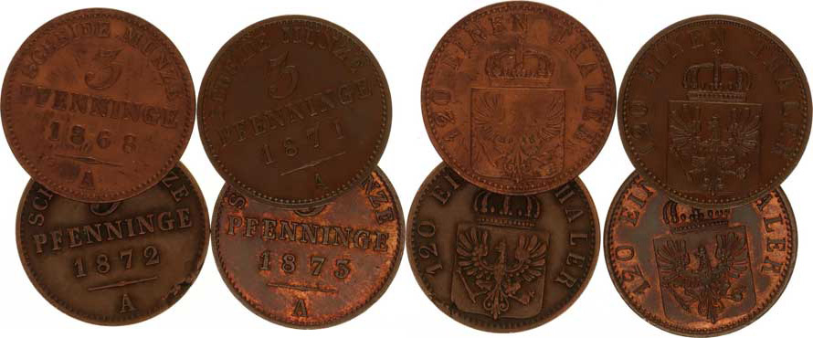 3 Pfennig 1868 A, 1871 A, 1872 A, 1873 A 4 ks