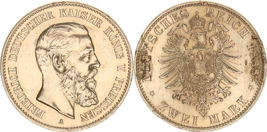 Prusko, Friedrich III.(1888), 2 Mark 1888 A Y. 116; KM 510