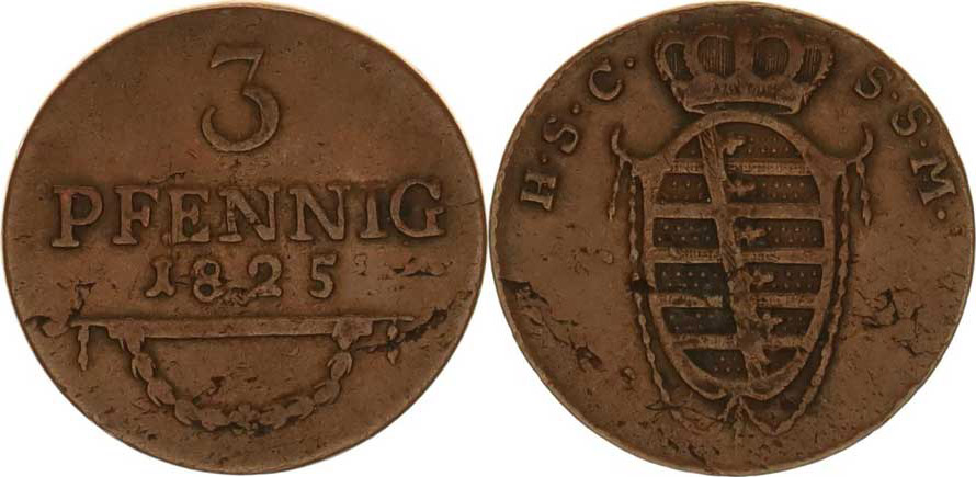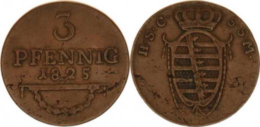 Sasko-Coburg-Saalfeld, Ernst I.(1806-1826), 3 Pfennig 1825 KM 133.2