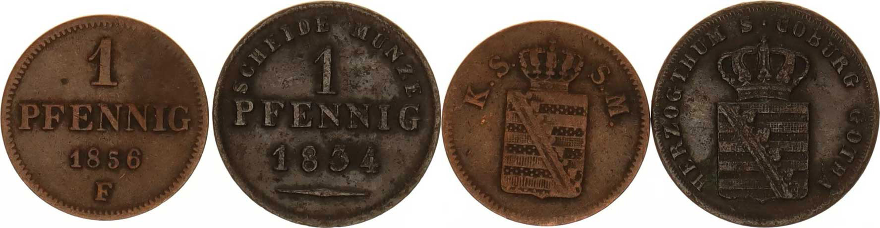 1 Pfennig 1834 Cr. 84 Sasko-Albertine, 1 Pfennig 1856 F KM 1184 2 ks