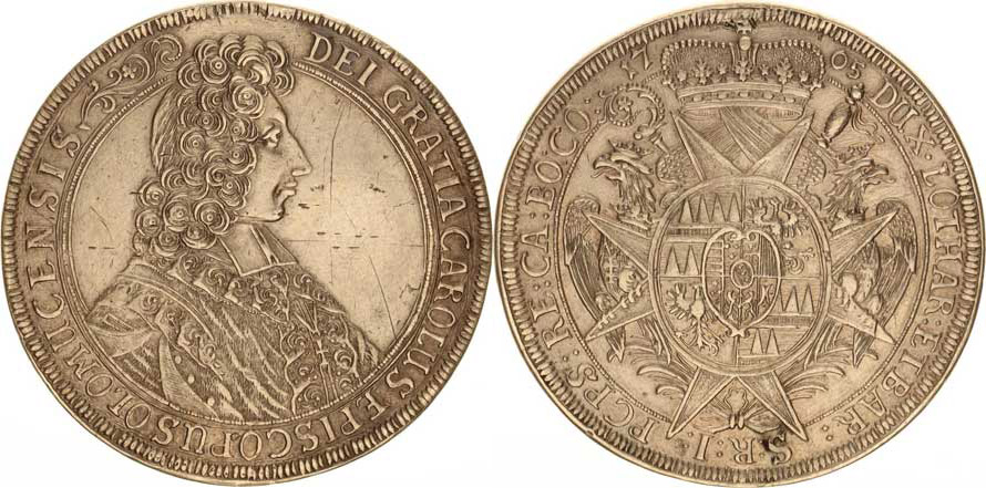 Olomouc, Karel III. Lotrinský (1695-1711), Tolar 1705 SV 575 28,378 g, dr. rys.