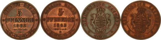 Sasko, Johann (1854-1873), 5 Pfennige 1862 B, 1863 B 2 ks
