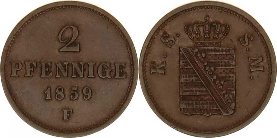 Sasko, Johann (1854-1873), 2 Pfennige 1859 F KM 1185