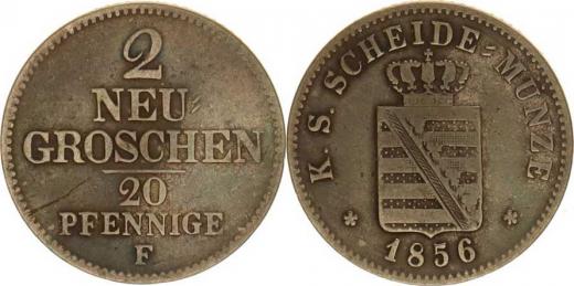 Sasko, Johann (1854-1873), 2 Neu-groschen 1856 F KM 1160