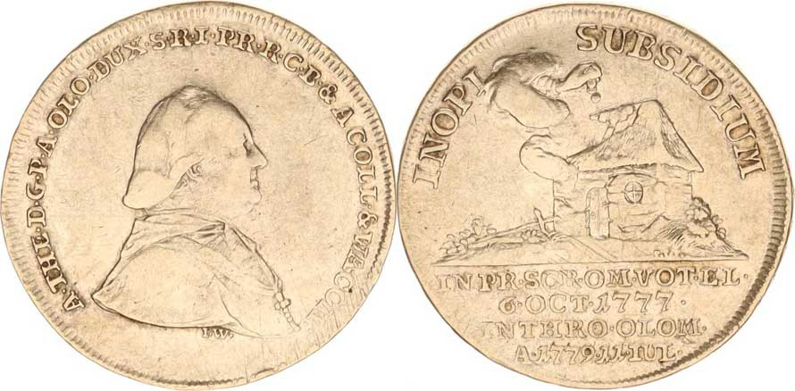 Olomouc, Antonín Th.Colloredo (1777-1811), Malý intronizační žeton 1779, Ag 25 mm Taul 265
