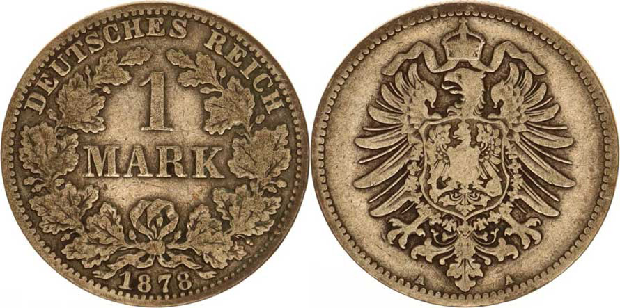 Německo, drobné ražby císařství, 1 Mark 1878 A