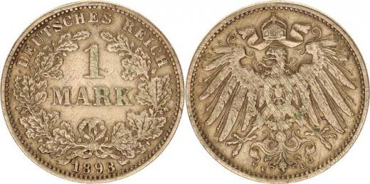 Německo, drobné ražby císařství, 1 Mark 1893 E