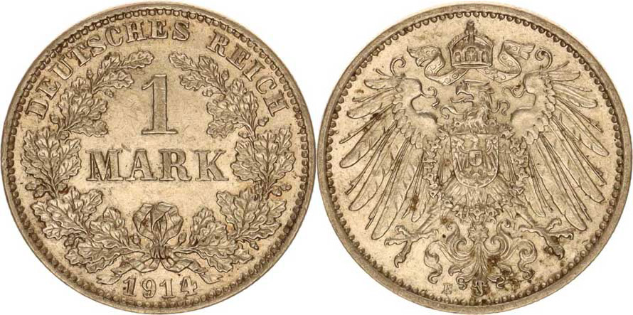 Německo, drobné ražby císařství, 1 Mark 1914 E