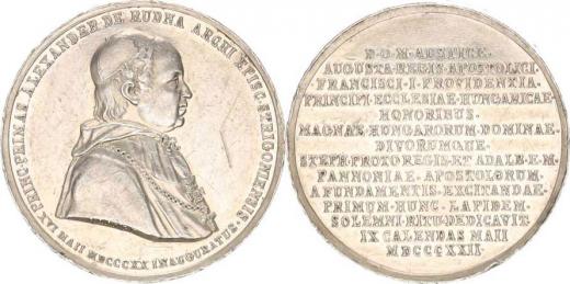 Arcibiskup Alexander de Rudna, poprsí zprava / Položení základní ho kamene nové katedrály 1822, 14-ti řádkový nápis sign.: Lang Ag 30,5 mm 13,214 g, rysky