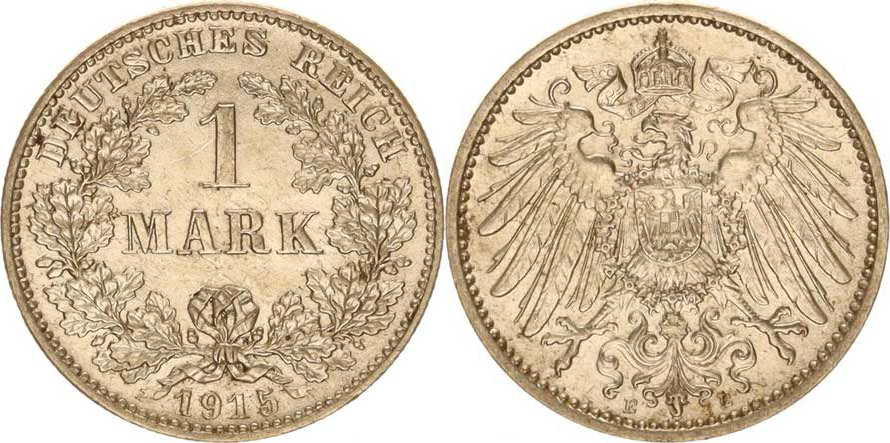 Německo, drobné ražby císařství, 1 Mark 1915 E
