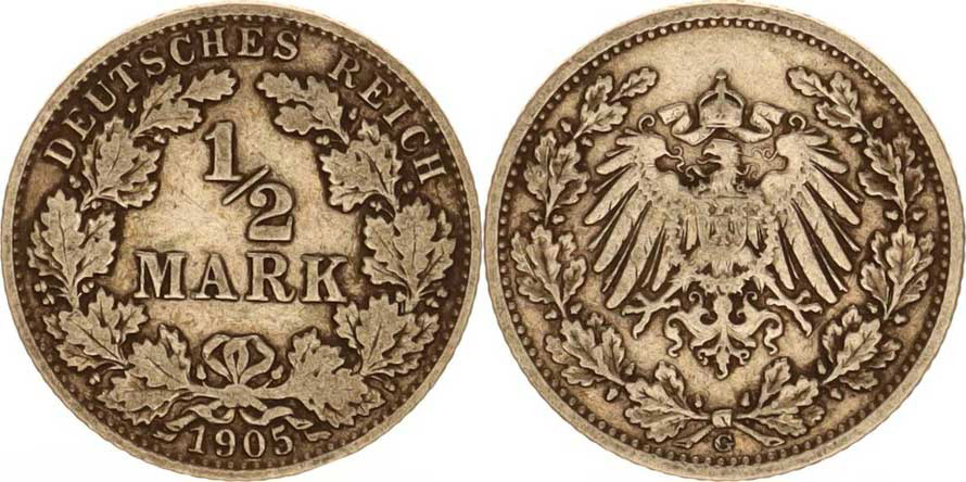 Německo, drobné ražby císařství, 1/2 Mark 1905 G