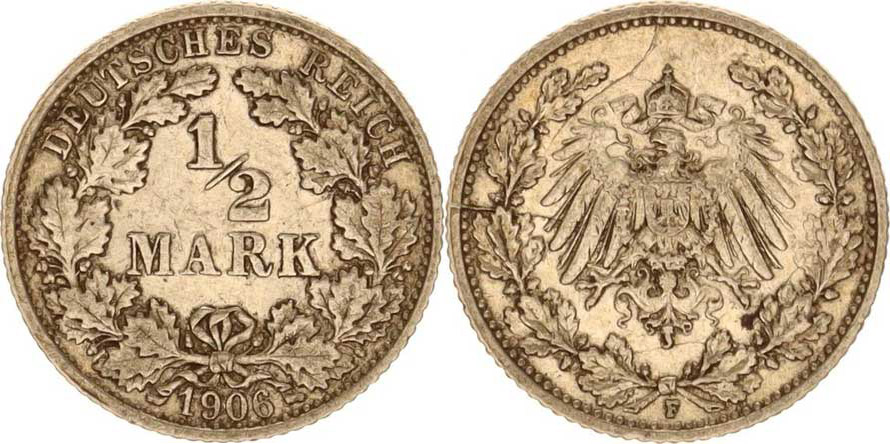 Německo, drobné ražby císařství, 1/2 Mark 1906 F