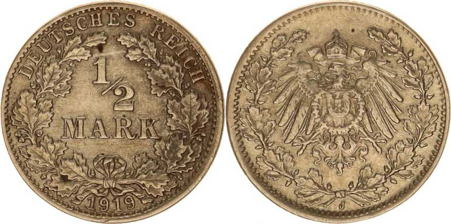 Německo, drobné ražby císařství, 1/2 Mark 1919 J