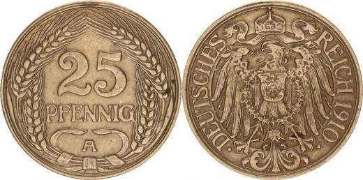 Německo, drobné ražby císařství, 25 Pfennig 1910 A KM 18