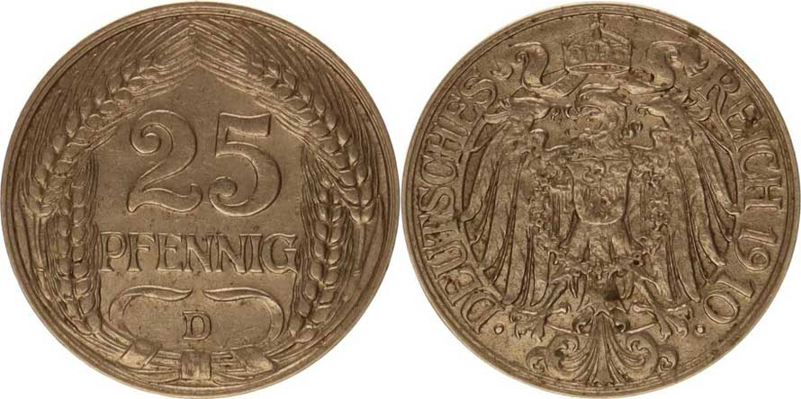 Německo, drobné ražby císařství, 25 Pfennig 1910 D KM 18