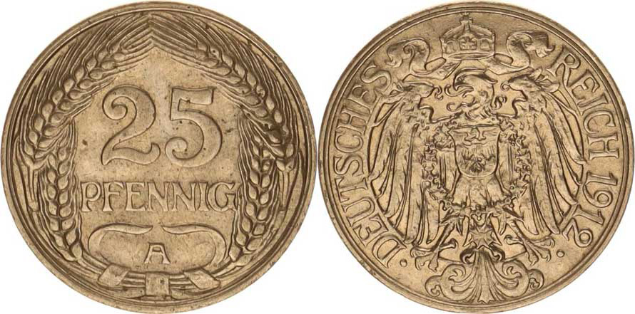 Německo, drobné ražby císařství, 25 Pfennig 1912 A KM 18