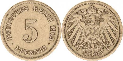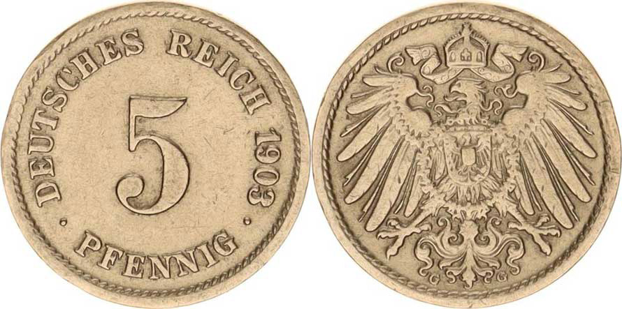 Německo, drobné ražby císařství, 5 Pfennig 1903 G