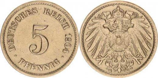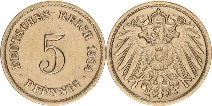 Německo, drobné ražby císařství, 5 Pfennig 1904 G