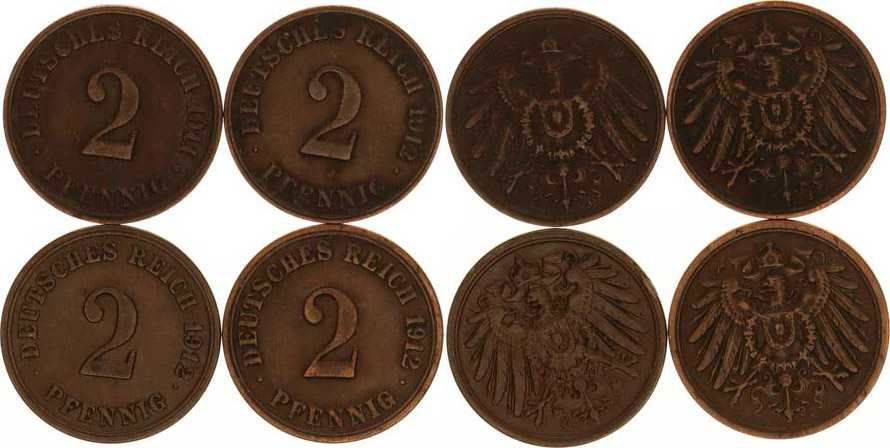 2 Pfennig 1911 J, 1912 A, F, J 4 ks