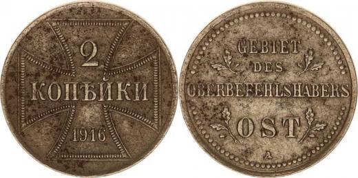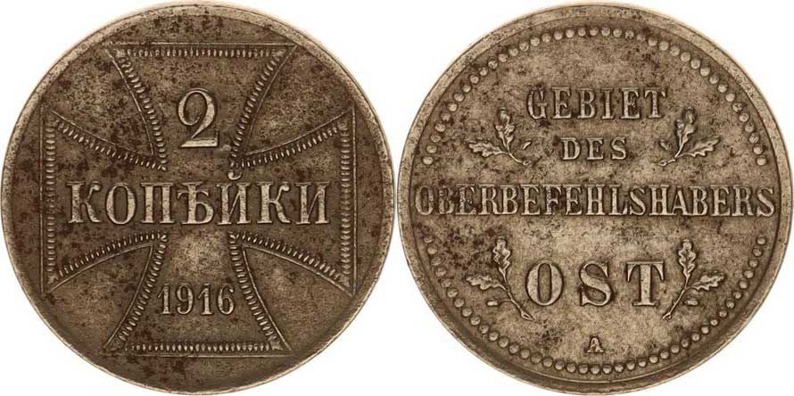 Německo, Vojenské mince pro východní frontu, 2 Kopějka 1916 A Fe KM 22