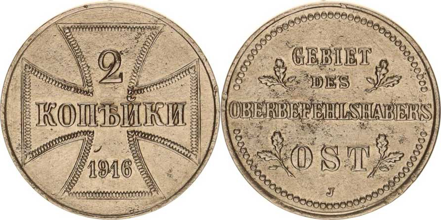Německo, Vojenské mince pro východní frontu, 2 Kopějka 1916 J Fe KM 22