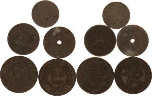 Německo, okupace Belgie (1914-1918), 25 Centimes 1915, 1916, +10 Centimes 1916, 1942, +5 Centimes 1