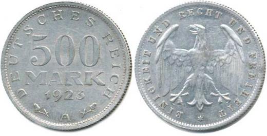 Výmarská republika (1918-1933), 500 Mark 1923 A KM 36